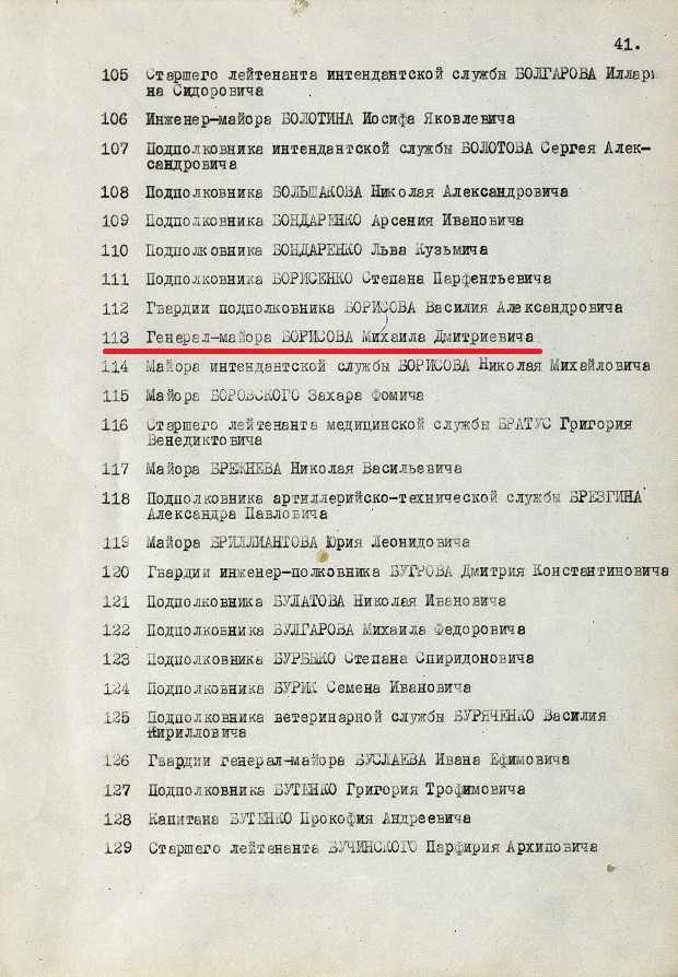 Протоколы допросов Борисова в НКВД пока не обнародованы. Поэтому мы решили пойти другим путем – изучить послевоенные наградные документы на Михаила Дмитриевича.