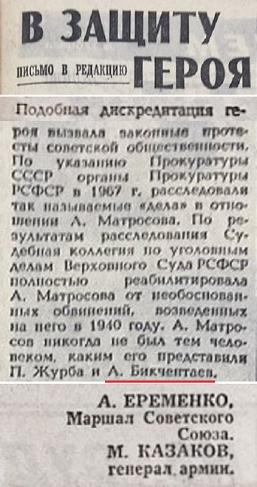И до сих пор в Кунакбаево пытаются пришить белыми нитками Муртазу к Матросову.