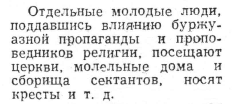 Правда, в Аскинском, Благовещенском, Буздякском, Краснокамском и ряде других районов даже осужденным за уголовные преступления оставили комсомольские билеты. Не исключили ни одного. А за что их исключать? Они же в церковь не ходили.