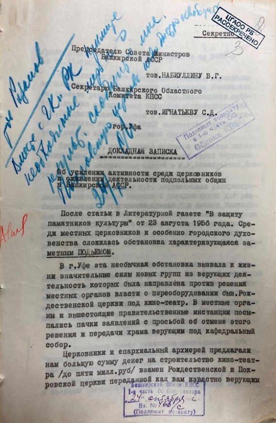 Мы, видимо, не скоро узнаем все детали подготовки к уничтожению православной святыни поскольку часть документов Башобкома 1955-1956 годов до сих пор находятся под грифом «секретно».