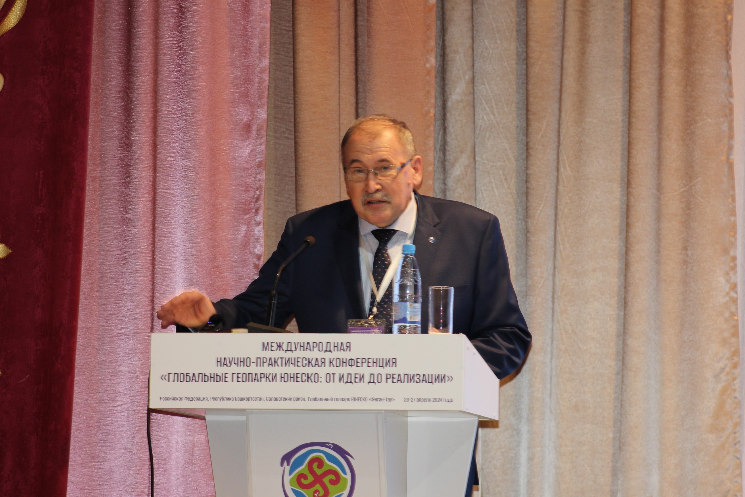 После приветственного слова, с докладом выступили руководитель Уфимского Федерального ИССЛЕДОВАТЕЛЬСКОГО ЦЕНТРА РОССИЙСКОЙ АКАДЕМИИ НАУК Василий мартыненко, ответственный секретарь российского Комитета международной программы ЮНЕСКО по геопаркам Сергей Семилеткин, а также директора геопарков Республики Башкортостан Галиев А.Ф. (Янган-Тау), Идельбаев А.М. (Торатау) и директор НОЦ «Новая среда для жизни» УУНиТ Белан Л.Н., Ответственный секретарь Комиссии РФ по делам ЮНЕСКО при МИД Довгаленко Т.Е., член Совета глобальных геопарков ЮНЕСКО Алиреза Амриказеми (видеопослание), гендиректор института им. А.П. Карпинского Химченко П.В.
